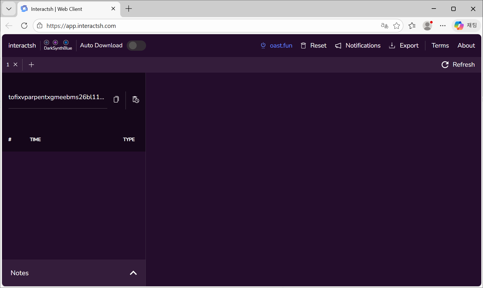 ◎ OAST(Out-of-Band Application Security Testing) 테스트 사이트에 접근해서 왼쪽에 보이는 URL을 복사한다.