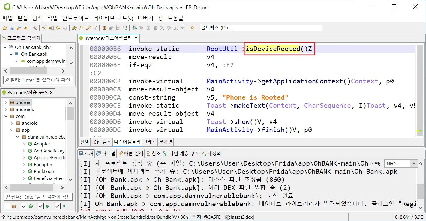 ◎ JEB에서 대상 앱을 연다. (파일 > 열기)