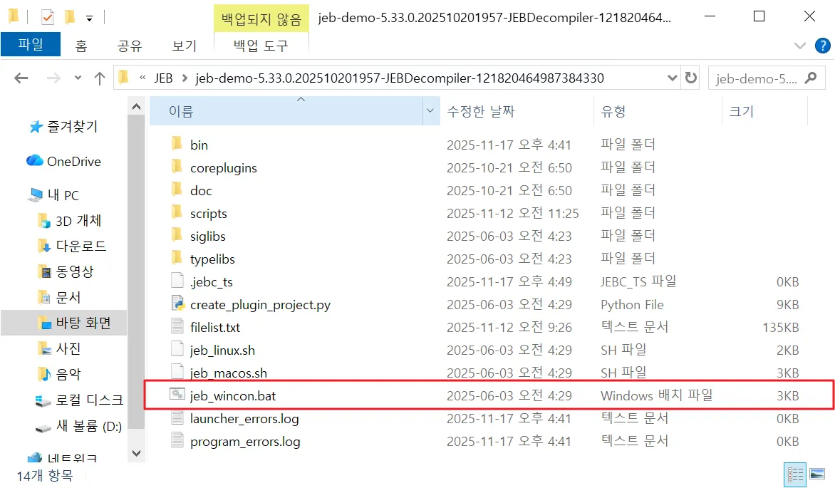 ◎ JEB 배치파일(jeb_wincon.bat)을 실행한다.