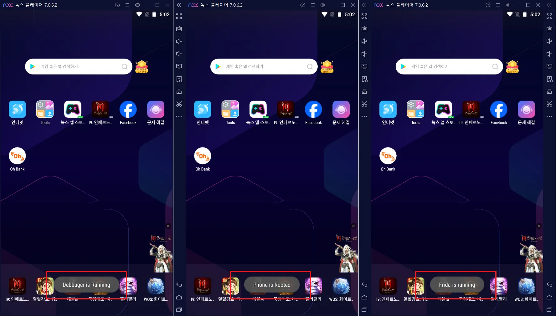 Frida 설치(+Nox)Frida를 설치하여 Nox에서 사용하려고 한다. Nox에 Frida Server를 설치하고 PC에 Frida Client를 설치할 예정이다. 여기서는 Nox 설치 및 루팅 이후 과정부터 진행하기 때문에 만약 Nox 설치 및