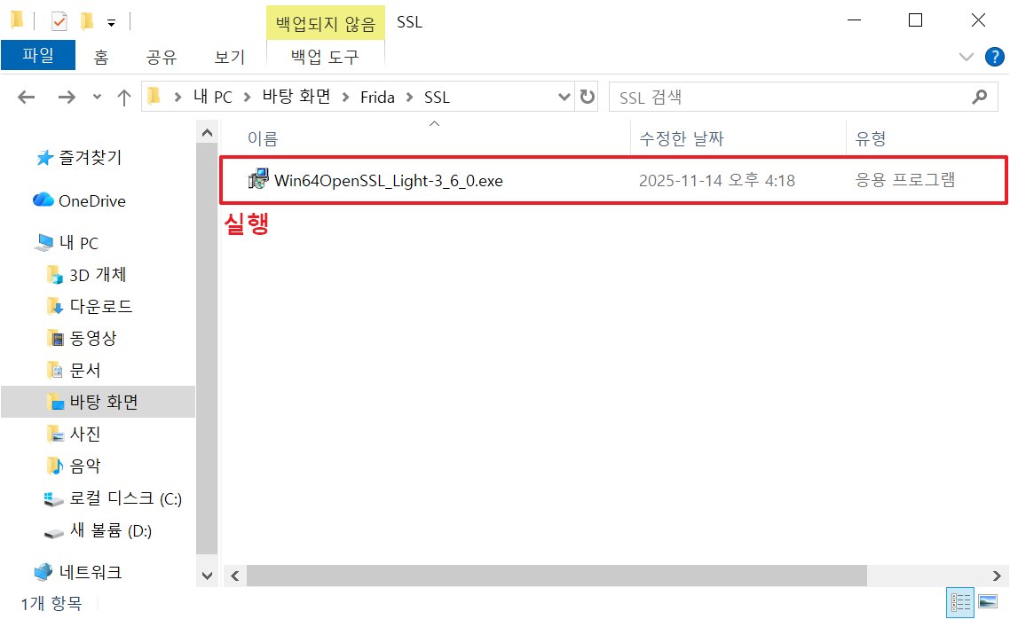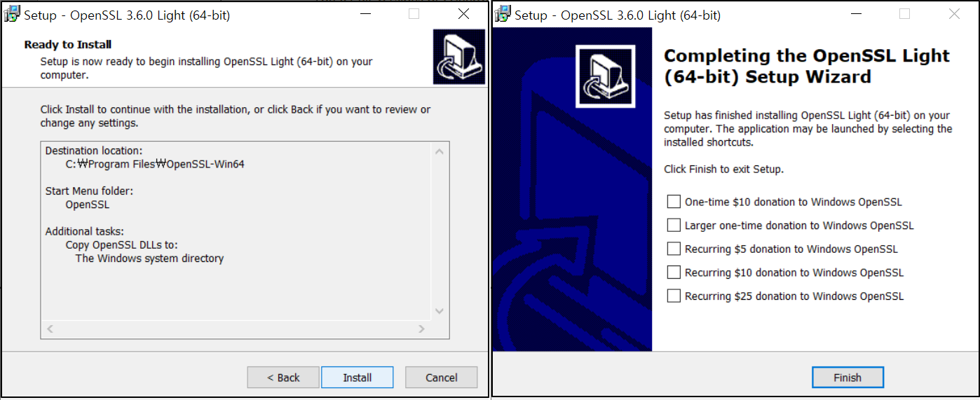◇ 다운로드 받은 설치파일을 실행해서 OpenSSL을 설치한다.
